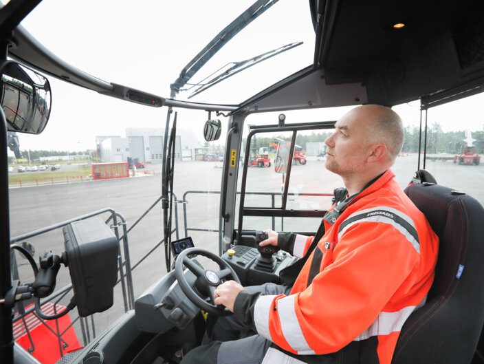 Your drivers will now be safer entering or exiting their Kalmar Top Loader, as there are more handrails and bars, plus all the climbing surfaces are non-slip. There are also steps on the right-hand side that can be used to enter or exit the cabin in emergencies.