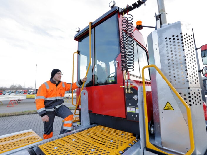 Hos Kalmar tror vi att en bekväm förare är en produktiv förare. Vår ergonomiskt utformade hytt är noggrant konstruerad för att minska trötthet och förbättra precisionen i arbetet. Från det ögonblick de kliver in kommer dina förare att uppleva en arbetsmiljö som är lika intuitiv som den är robust. Förvänta dig: